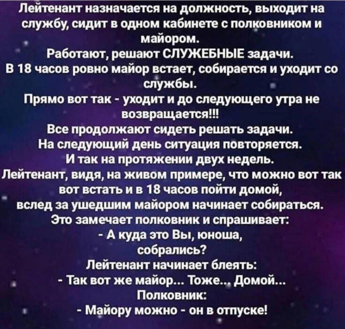 Анекдот "О распорядке дня лейтенанта, майора и полковника"