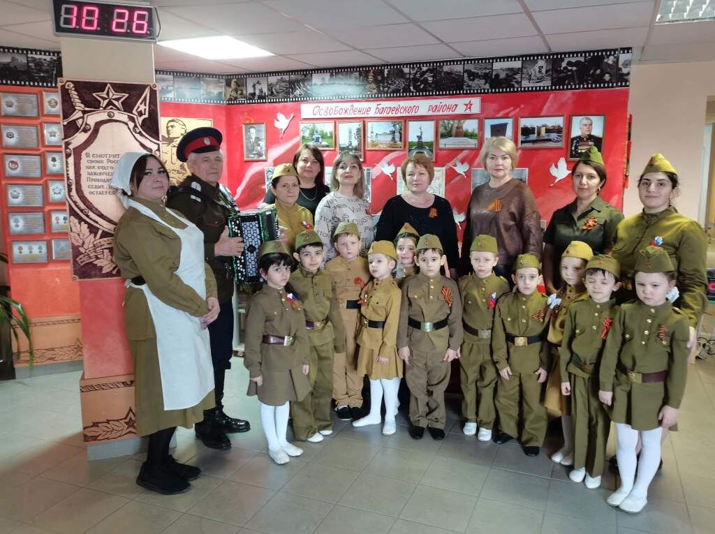 Патриотическое воспитание — одно из важнейших задач педагогов. Для этого в детском саду используются разнообразные методы и формы работы с учетом возрастного мировосприятия детей. В ходе мероприятия педагоги рассказывали об истории освобождения района и подвигах воинов-освободителей. Рассказ сопровождался демонстрацией фотографий и экспонатов, которые находятся в музее. Минутой молчания почтили присутствующие память воинов и мирных жителей, погибших во время оккупации. Под звуки баяна дети исполнили песни военных лет. А по окончанию мероприятия все с большим удовольствием отведали фронтовую кашу. Мероприятие стало важным уроком патриотизма и уважения к истории родного края и страны. Напомним, что в этом году отмечается 80-летие Великой Победы. Подвиг советского народа в Великой Отечественной войне – это символ мужества, стойкости и самопожертвования, беспримерный по масштабам и значимости. И сохранение памяти о поколении победителей – это наша священная обязанность. Мы должны передават