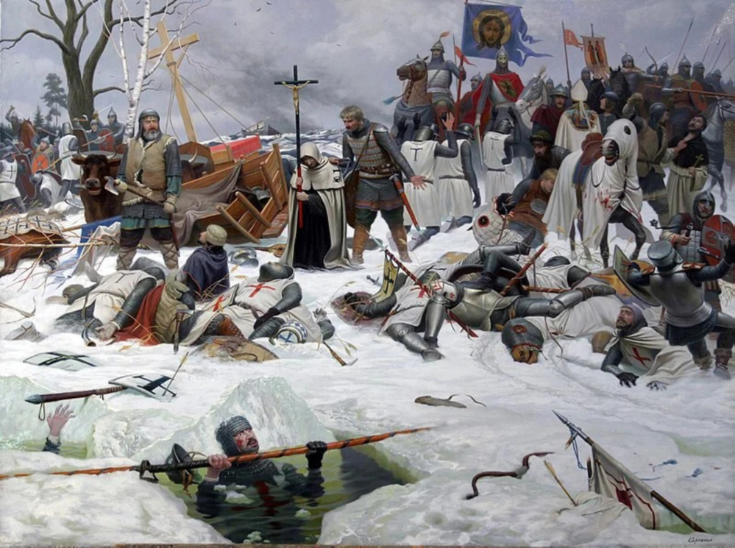 Заметной фигурой в русской истории является Александр Ярославич Невский, сын того самого Ярослава Всеволодовича, разбившего орден меченосцев под Юрьевым. Во многом благодаря его полководческому и политическому таланту русская земля смогла выстоять перед северными захватчиками в это непростое для нее время. Большая часть княжеств были разорены Ордой, северные княжества не могли ждать помощи от своих ослабленных соседей, с другой стороны усиливали свой натиск северные соседи - немцы, датчане и шведы, причем при активной поддержке католической церкви. Подспорьем для этого выступило христианство различного толка на Руси и в Европе. Крестовый поход против Руси идеологически обосновали борьбой с ересью и обвинение в помощи язычникам, коих европейские интервенты стремились обратить в свою веру.