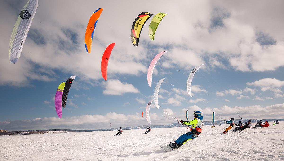 Зимний кайтинг – это невероятное удовольствие, но он требует особой подготовки. Снег, лёд и холодные температуры вносят свои коррективы, поэтому важно заранее позаботиться о снаряжении. В этой статье разберём какое оборудование вам понадобится. 1. Подготовка кайта: какой кайт выбрать? Для зимнего катания используют два типа кайтов: Парафойлы – идеальны для снега и льда. Они не требуют накачивания, устойчивы к порывистому ветру и легко стартуют с поверхности. Хорошо тянут в слабый ветер от 3 м/с. Надувные кайты – комфортны в катании на ветру от 5 м/с Если вы хотите универсальный вариант, который можно использовать и зимой, и летом – лучше выбрать надувной кайт, его будет удобнее рестартить с воды. Если ваш приоритет – комфорт на снегу, и в вашем регионе преимущественно дуют слабые ветра, то парафойл будет лучшим решением. В отличие от летнего сезона, зимой вместо кайтборда используют: Сноуборд – подходит для катания по рыхлому снегу и горным, рельефным спотам. Лучше выбирать модели с