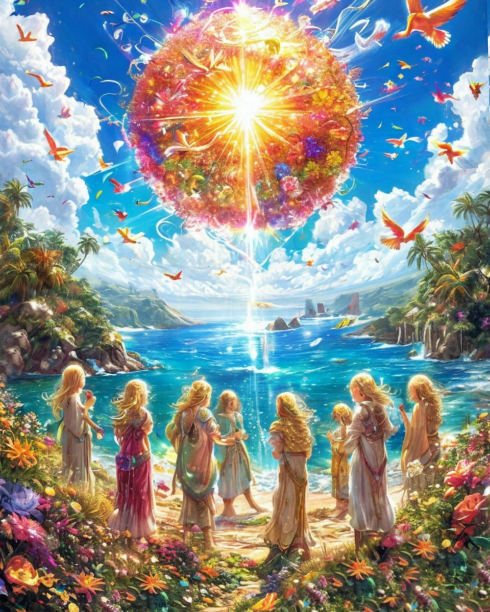 Автор Ручьева Е.В. В начале времен, когда не было ни плоти, ни тверди, ни планет, существовал лишь бескрайний океан света. Это был мир чистой энергии, где все пребывали в гармонии, а пространство было наполнено островами, парящими в бесконечности. Эти острова не были земными — они были сгустками энергии, сияющими, как драгоценные камни, и каждый из них был домом для бесплотных существ, которых называли Этерионцами. Этерионцы были высокими, стройными существами с длинными светлыми волосами, которые струились, как лучи света. Их одеяния — легкие туники, сотканные из энергии, — переливались всеми оттенками радуги, а их глаза сияли, как звезды. Они не знали ни боли, ни страха, ни времени. Их мир был вечной радостью созидания, где каждая мысль обретала форму, а каждая форма становилась частью великой росписью вселенной. Одним из таких существ был юный Этерионец по имени Люмис. Он жил на острове Луминос, где его наставник, мудрый Аэлион, учил его искусству творения. Люмис был любоз