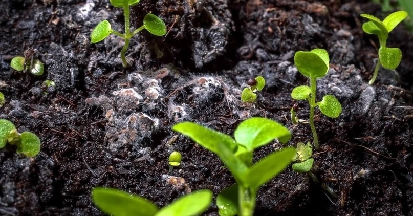 Плесень и грибок. Белый налет на поверхности грунта возникает из-за повышенной влажности и плохой вентиляции. Чтобы исправить ситуацию, рыхлите землю, уберите верхний слой плесени и поливайте рассаду слабым раствором марганцовки. Также можно присыпать поверхность древесной золой.