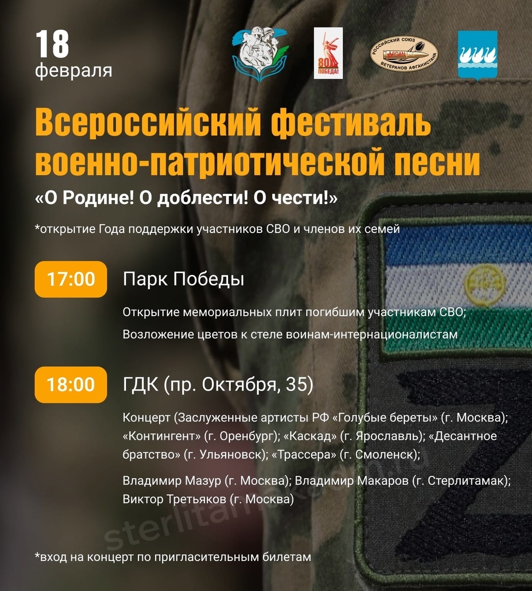 В это же время в ГДК по пр.Октября, 35 будет работать патриотическая выставка, а в 18 часов начнётся концерт артистов и музыкальных групп федерального значения – «Голубые береты», «Каскад», «Контингент», «Десантное братство», «Трассера», Владимира Мазура, Виктора Третьякова и многих других. На концерт приглашены участники СВО, их семьи, ветераны боевых действий. Вход будет по пригласительным билетам.