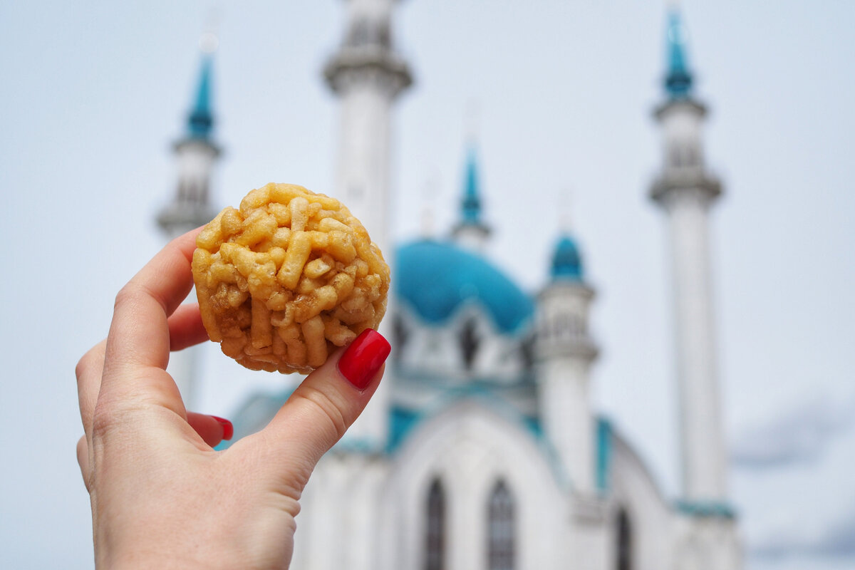 При посещении Казани один из обязательных пунктов в туристическом чек-листе — попробовать местную выпечку. Например, эчпочмак — треугольный пирожок с начинкой из картофеля, мяса и лука. Такая выпечка — изобретение кочевых тюркских народов. Испечённые пирожки можно было долго хранить. На остановках в пути в них через отверстие сверху заливали горячий бульон. Сегодня эти пирожки настолько тесно связаны с образом Казани, что в 2016 году в городе даже установили памятник эчпочмаку.