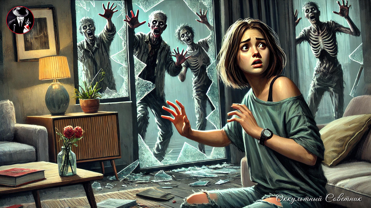 Дрожащими руками она посветила телефоном в окно и тут же отпрянула: с той стороны стекла на неё смотрело искажённое человеческое лицо. Серая кожа была покрыта трупными пятнами, глаза мутные, с расширенными зрачками, а рот... Рот был измазан чем-то красным и влажным.