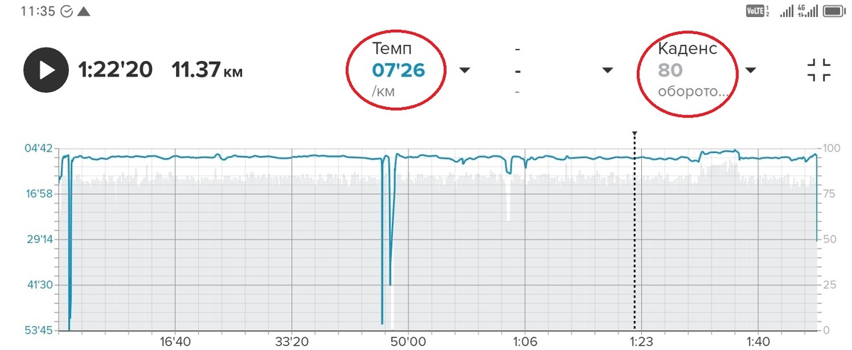 При темпе 4:49 каденс 90х2=180 - Идеально! Наконец-то! ;)