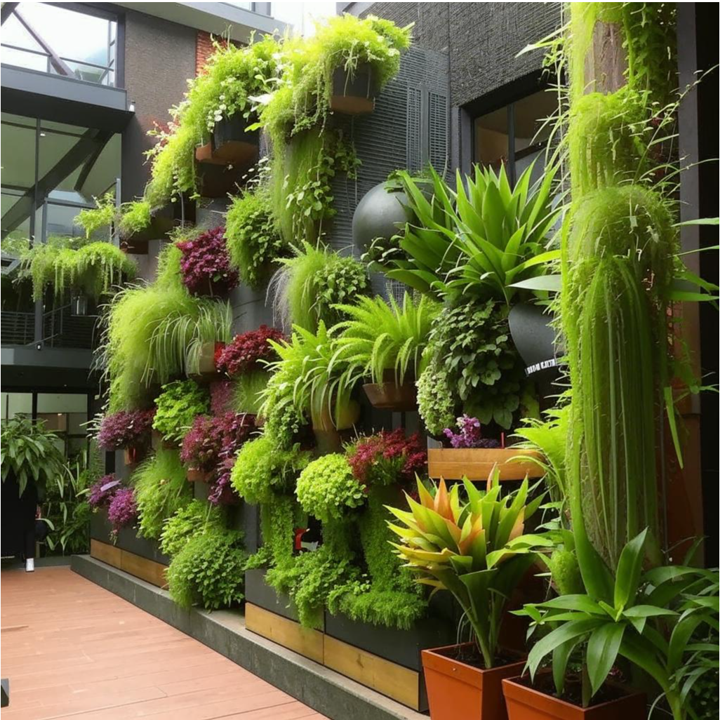 Живые стены — специальные панели с кармашками для растений, которые заполняются субстратом и растениями. Такие системы часто оснащены системой автополива.
