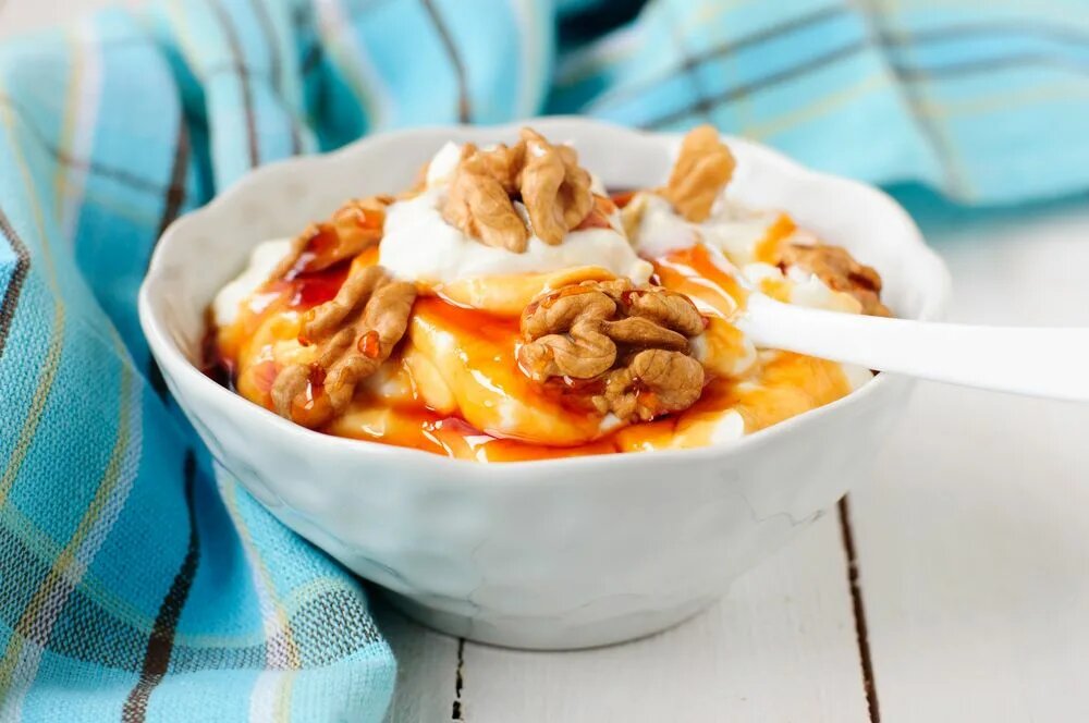 Греческий йогурт богат белком, который даёт чувство сытости, а орехи и мёд добавляют полезные жиры и натуральную сладость. Как приготовить: Просто смешай всё в контейнере, и перекус готов! ✔ Почему полезно?