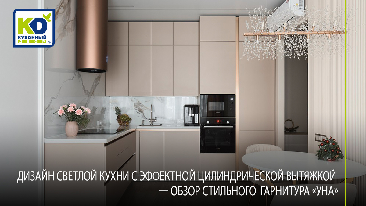Нежность и невесомость снаружи, продуманная организация и серьёзное наполнение внутри. Простая, понятная геометрия в сочетании с эффектными акцентами — всё это о роскошной кухне Уна для Алины Герасиной. Гордимся, что это уже третий проект дизайнеров КД для Алины. Если к нам возвращаются снова и снова, значит, мы подтверждаем высокие стандарты качества на всех этапах — от производства до установки! Материал фасадов Фасады утончённого песочного оттенка изготовлены из экоплиты Egger, которая поставляется на фабрику «Кухонный Двор» из Австрии. Это прочный, надёжный, устойчивый к перепадам температуры и влажности материал, соответствующий всем международным стандартам экологической безопасности. Наполнение кухни За нижними фасадами скрываются не только полноразмерная посудомоечная машина, но и глубокие выдвижные ящики для столовых приборов, кухонных принадлежностей, мелкой техники и даже запасов овощей. Вся кухня оснащена немецкой фурнитурой Hettich, обеспечивающей плавный ход и