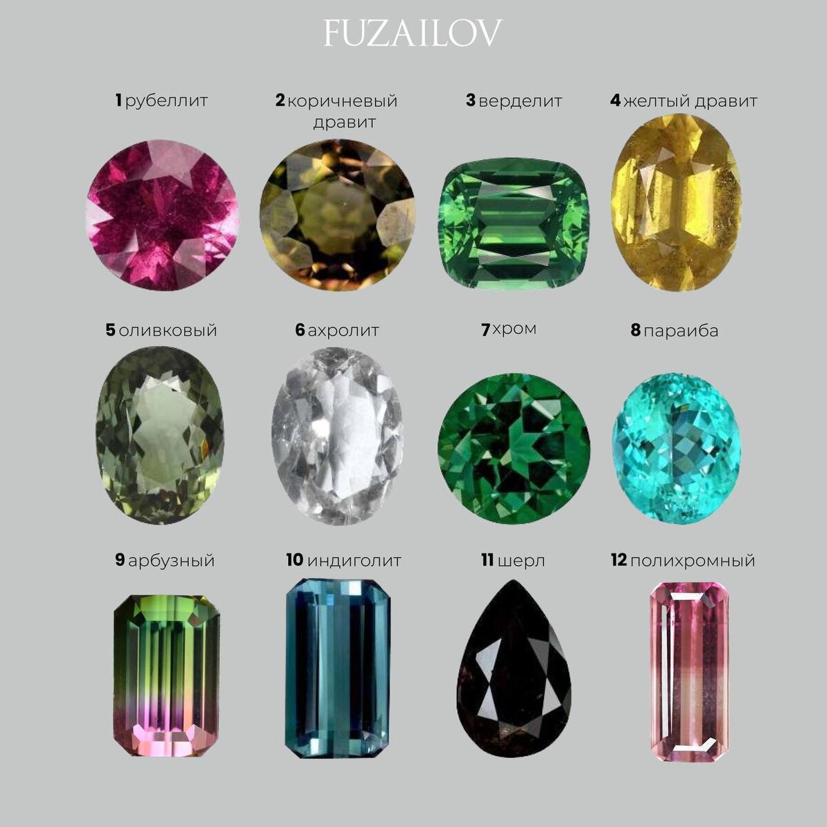 Турмалины - самые богатые на цветовую палитру камни, так давайте вместе разберем самые популярные оттенки этого камня
