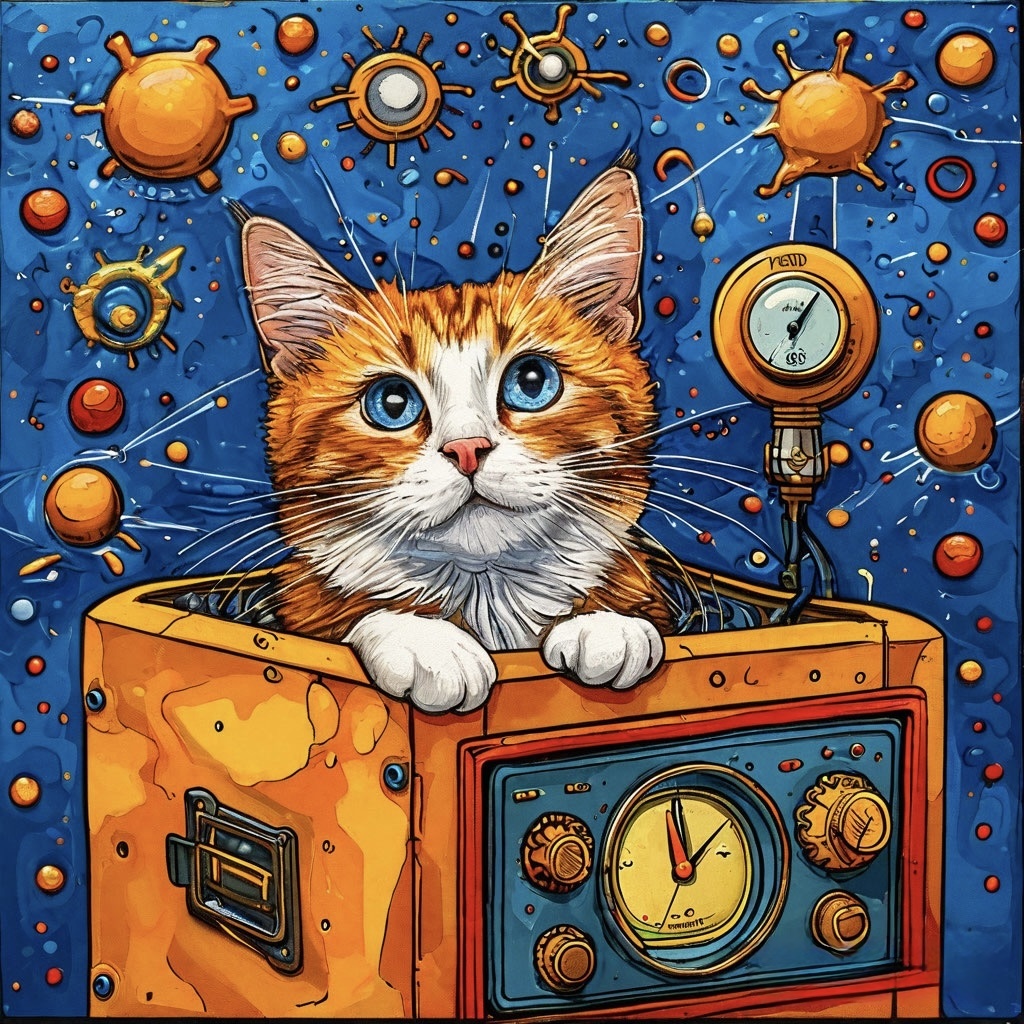 🌀Пролог: Где Начинается Невозможное В 1963 году метеоролог Эдвард Лоренц задался вопросом: «Может ли взмах крыльев бабочки в Бразилии вызвать торнадо в Техасе?». Так родился «эффект бабочки» — символ хрупкости причинно-следственных связей. Но что, если перенести эту идею в квантовый мир, где частицы существуют в суперпозиции, а время течёт нелинейно? Представьте: кот Шрёдингера, полуживой-полумёртвый, машет хвостом в ящике. Может ли это движение, усиленное квантовой неопределённостью, отправить рябь в прошлое, меняя уже случившиеся события? Этот вопрос не просто фантазия — он бросает вызов самим основам физики. «Прошлое, настоящее и будущее — лишь иллюзия, хотя и весьма упорная», — писал Эйнштейн, не подозревая, что кот Шрёдингера может превратить его слова в провокацию. 🌀 Суть парадокса: Когда неопределённость становится машиной времени Кот Шрёдингера, как мысленный эксперимент, иллюстрирует квантовую суперпозицию: до открытия ящика кот одновременно жив и мёртв. Но если добав