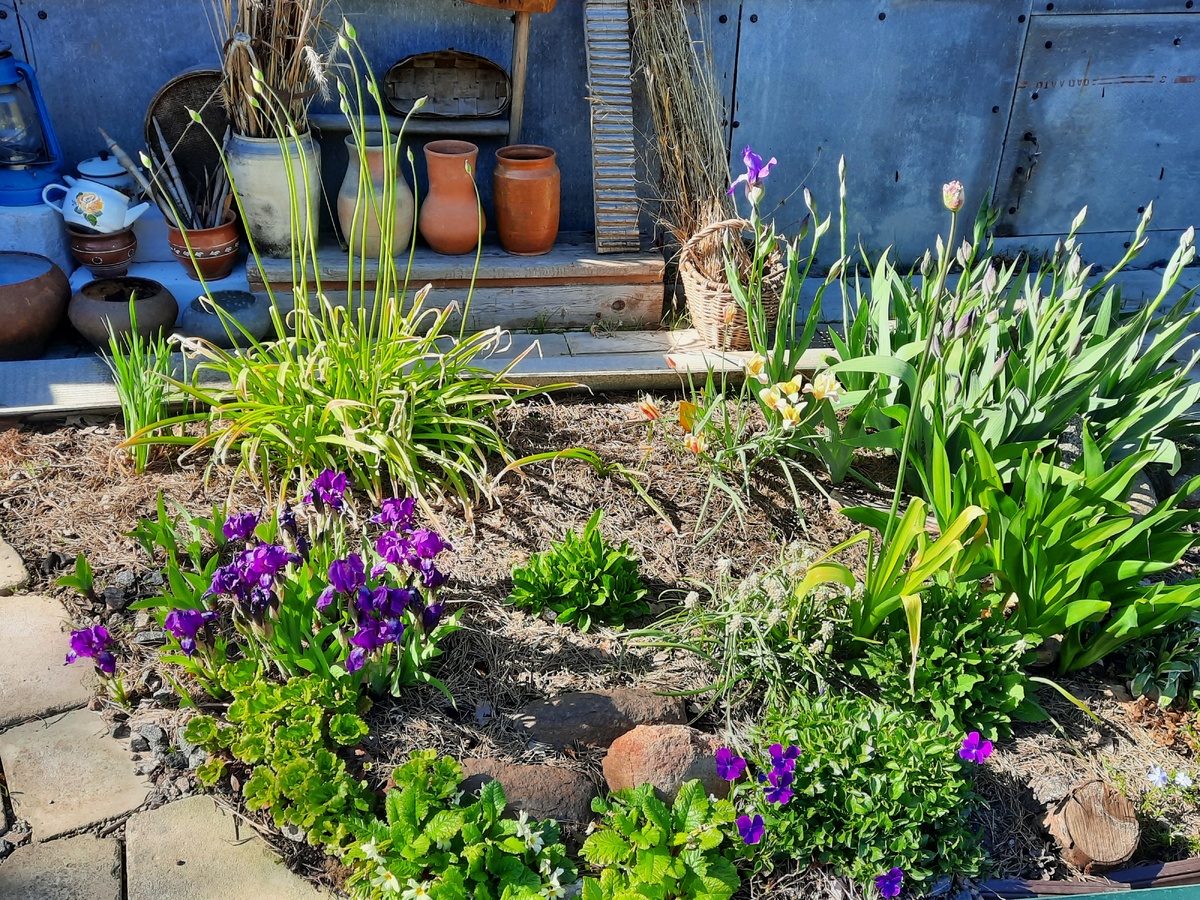 Когда-то, когда мооего сада не было еще даже в проекте, не было в моих фантазиях, цветы я уже собирала, все подряд! И ирисы тоже! Насобирала прилично! Больше десятка разых. Цвели они у меня через раз, да и так себе. Пыталась место подобрать, но их все не устраивало. Тогда я их почти все отдала в хорошие руки! Там места много, солнца много! пусть людей радуют! Оставила себе всего ничего, карликов, сибирский и самый простой стародачный (Маша сорт писала, но я уже не помню, где он у меня зафиксирован). Еще парочку мне подарили, один прикупила сама. Так что, отчитываюсь по нынешнему сезону! Мои малыши! Самые простые! Судя по их виду и размерам, их два разных у меня, побольше и поменьше. Зацветают они раньше всех других ирисов. Справа те, что покрупнее, слева пониже, цветущие попозже. Вид снизу. Они же при дургом освещении. В это же время рядом зацветают те самые стародачные, тоже самые простые, но покрупнее. Они цветут в начале июня, не очень долго, но так памятно, как в детстве! С