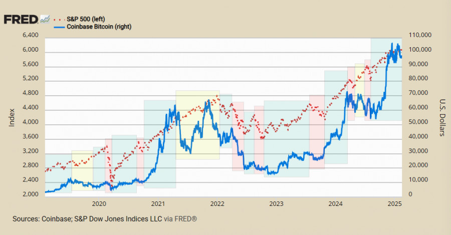 π§ ΠΠ½ΠΈΠΌΠ°ΡΠ΅Π»ΡΠ½ΡΠ΅ ΡΡΠ΅ΠΉΠ΄Π΅ΡΡ ΡΠΆΠ΅ Π΄Π°Π²Π½ΠΎ Π·Π°ΠΌΠ΅ΡΠΈΠ»ΠΈ, ΡΡΠΎ ΠΌΠ΅ΠΆΠ΄Ρ Π±ΠΈΡΠΊΠΎΠΈΠ½ΠΎΠΌ ΠΈ ΡΠΎΠ½Π΄ΠΎΠ²ΡΠΌ ΠΈΠ½Π΄Π΅ΠΊΡΠΎΠΌ S&P 500 Π΅ΡΡΡ Π΄ΠΎΠ²ΠΎΠ»ΡΠ½ΠΎ ΠΎΡΡΠ΅ΡΠ»ΠΈΠ²Π°Ρ ΠΊΠΎΡΡΠ΅Π»ΡΡΠΈΡ. π€ ΠΡΠΎ Π²ΡΠ³Π»ΡΠ΄ΠΈΡ Π½Π΅ΠΌΠ½ΠΎΠ³ΠΎ ΡΡΡΠ°Π½Π½ΠΎ, Π½ΠΎ ΡΡΠΎΠΌΡ ΡΠ²Π»Π΅Π½ΠΈΡ Π΅ΡΡΡ Π΄ΠΎΠ²ΠΎΠ»ΡΠ½ΠΎ ΠΏΡΠΎΡΡΠΎΠ΅ ΠΎΠ±ΡΡΡΠ½Π΅Π½ΠΈΠ΅. πΈ ΠΠ½ΠΎΠ³ΠΈΡ