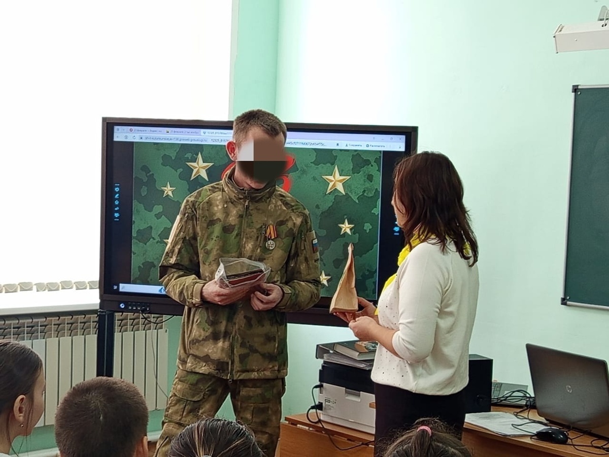 В преддверии Дня защитника Отечества к школьникам села Каран пришел участник СВО с позывным «Татарин», который находится в краткосрочном отпуске.