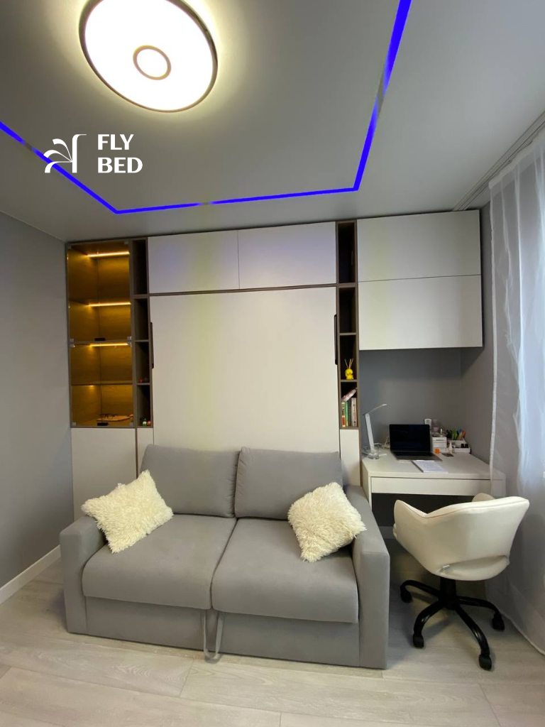 Индивидуальный проект, разработанный для наших клиентов, включает комплект мебели, который сочетает в себе практичность и удобство. В него входит диван, который легко трансформируется в комфортную кровать, а мягкое изголовье добавляет дополнительный комфорт при отдыхе. Подсветка кровати и полок обеспечивает мягкое освещение, создавая уютную атмосферу в комнате. Отдельно стоящий шкаф станет идеальным дополнением, обеспечивая дополнительное место для хранения. Этот проект был разработан с учетом всех потребностей и пожеланий клиента, чтобы создать функциональное и удобное пространство. Шоу-рум в Москве: W-Plaza, м. Тульская, Варшавское шоссе д.1 стр. 1⠀⠀ Тел.: +7-495-208-98-86 WhatsApp: +7(926) 802-53-34