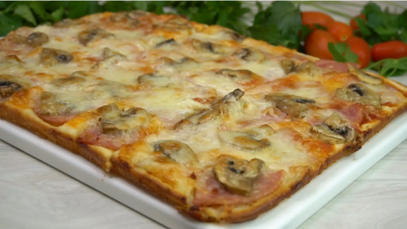 Обожаю такие рецепты! Без возни, без замеса, самое оптимальное, когда гости на пороге! Быстро, вкусно, сытно, а по вкусу 👉 не уступает настоящей пицце. Готовлю такой открытый пирог "пятиминутка" когда нет времени. Очень вкусно! Очень! И крайне просто! Просто наливаю тесто, сверху кладу все ингредиенты в форму и запекаю (готовится просто-просто, получается вкусно-вкусно). Вроде и пицца, и в тоже время пирог. Рецепт: Для теста: кефир -250 мл яйцо-1шт соль -1/2ч.л. сахар -1/3ч.л. разрыхлитель -1ч.л. растительное масло -1ст.л мука -160г Для начинки: кетчуп -2-3ст.л. ветчина -100г грибы шампиньоны -2-3шт сыр моцарелла для пиццы -150г (или другой твердый сыр) СПОСОБ ПРИГОТОВЛЕНИЯ Итак, приступаем. В миску наливаем кефир комнатной температуры, разбиваем яйцо, добавляем соль, сахар. Все перемешиваем. Отмерим муку, добавим к ней разрыхлитель, перемешаем и добавим муку с разрыхлителем в кефир с яйцом, перемешиваем, тесто должно получиться как густая сметана. Возможно, потребуется еще муки, все