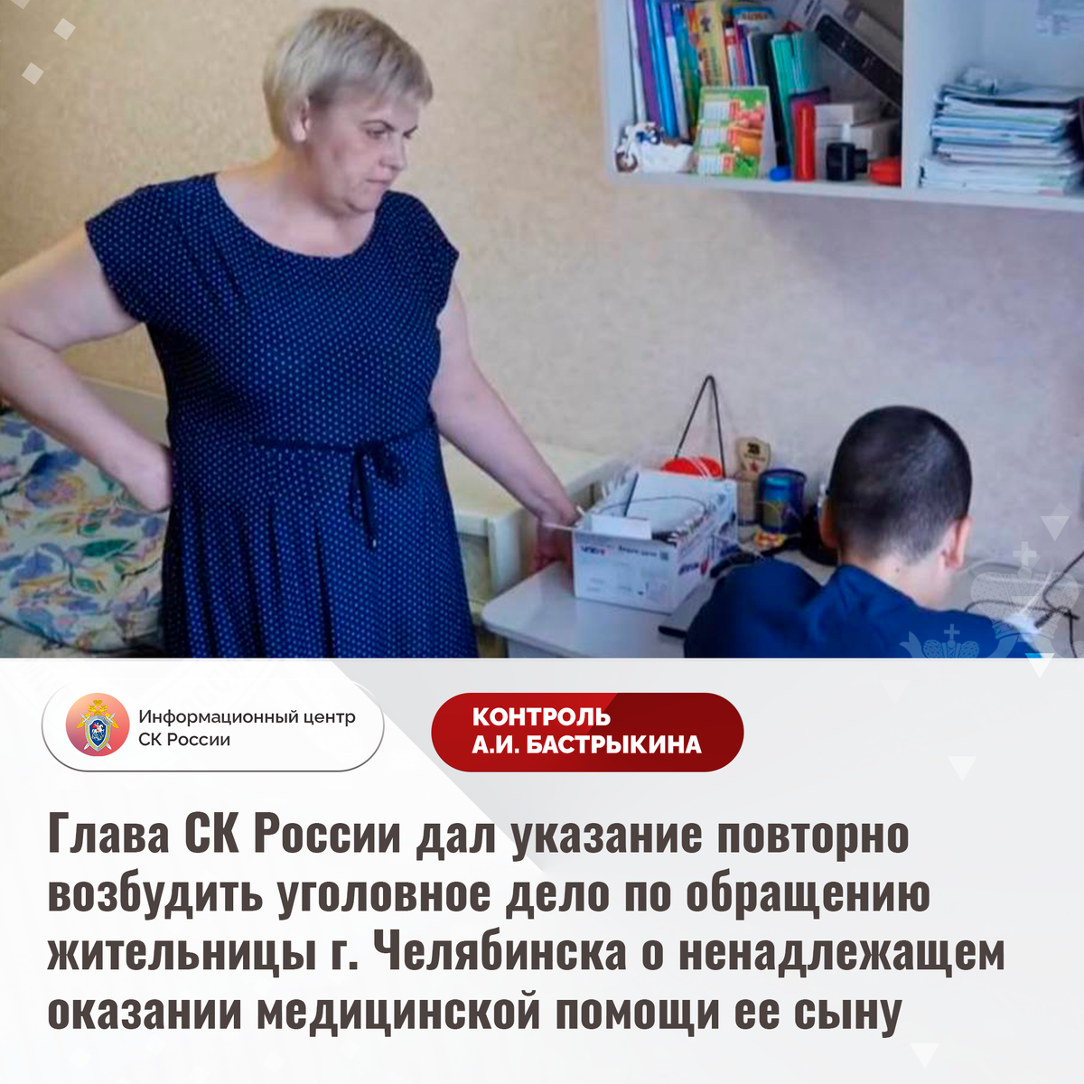 Глава СК России дал указание повторно возбудить уголовное дело по обращению жительницы г. Челябинска о ненадлежащем оказании медицинской помощи ее сыну