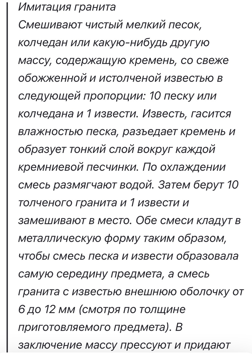 Так ловко наш и не наш народы дурят, они всё схавают….Так много видео, как в Исаакиевском соборе и Эрмитаже смотрят на отколы искусственно мрамора, который выдают упорно за натуоальный….В СССР была научная литература про это….Например, из «Книги кустаря» 1931 года: