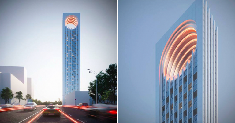 Почему-то больше всего оригинальных, назовем их так, проектов строится именно в этом районе. Стоит вспомнить торговый центр в виде «турбины», который построят у «Полежаевской», или бизнес-центр, который «соберут» из 23 кубиков и возведут на участке 4-й Магистральной улицы, чуть дальше станции метро. Впрочем, недавно появился еще один проект, который по «оригинальности» обошел все предыдущие. Это проект жилого комплекса, который может появиться на улице Мневники, вблизи станций «Хорошево» МЦК и «Народное Ополчение» БКЛ. Как видно на рендерах, опубликованных каналом «Недвижимость инсайды», там хотят построить небоскреб с дыркой наверху, которая будет подсвечиваться огненным цветом. Напоминает все это башню Саурона из «Властелина колец», и за северо-западом Москвы, если небоскреб построят, будет наблюдать всевидящее око. Если вы полагаете, что круг в жилом комплексе «вырезали» из фасада просто так, то вы ошибаетесь. По архитектурной задумке «вырезанная» часть башни разместится во дворе жи