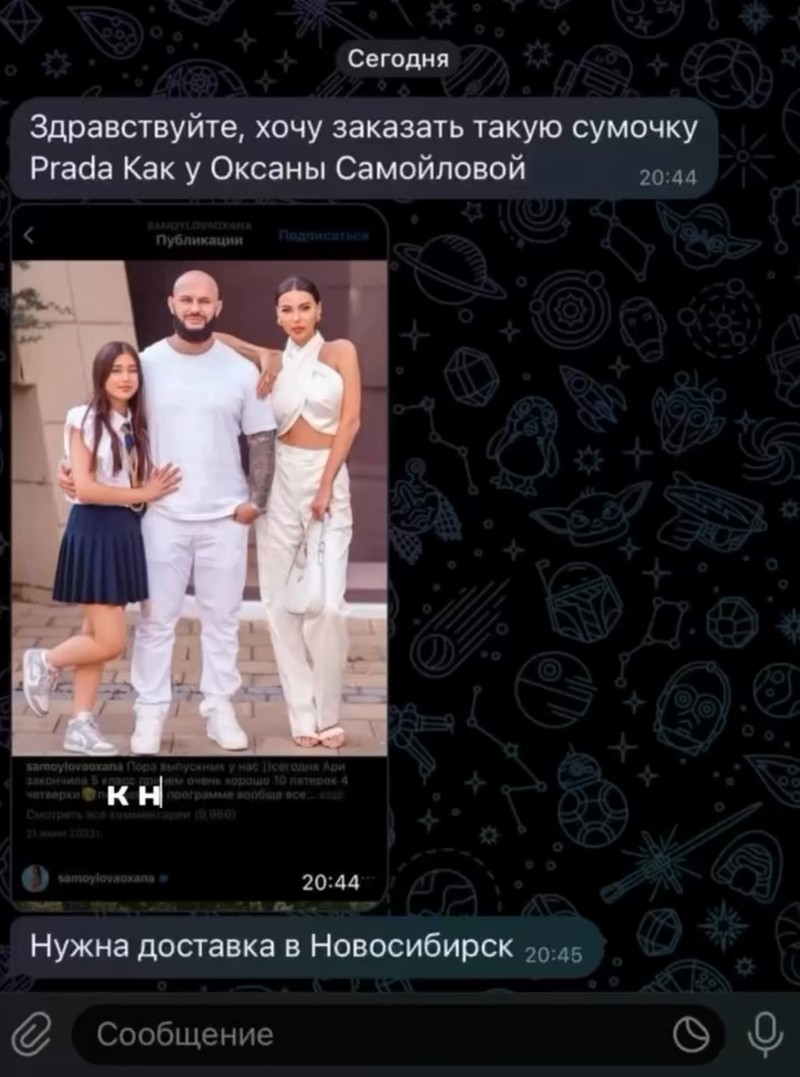 Недавно к нам обратился мужчина с запросом на сумочку Prada, точно такую же, как у Оксаны Самойловой. В бутике подобная модель стоит баснословные деньги, но мы знаем, как сделать стильный подарок без переплат. Мы работаем с поставщиком в Китае, который изготавливает копии один в один, используя те же материалы, кожу и фурнитуру, что и оригинал. Таким образом, вы получаете сумку великолепного качества, но без бешеной наценки от бренда. Через 7 дней сумка поступила на наш склад. Мы тщательно проверили её качество, сделали фотоотчет и отправили товар. Доставка займет от 10 до 20 дней, и клиент получит свой стильный аксессуар. Хочешь получить премиальный аксессуар по разумной цене? Подписывайся на наш Telegram-канал YeezyUnique и используйте промокод «Дзен10» на скидку 10%!
