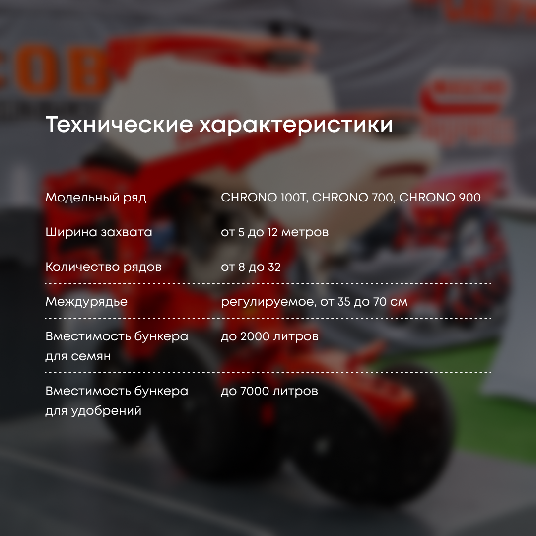 Ключевые преимущества: 💥 Высокая скорость работы: благодаря передовой технологии сеялка обеспечивает качественный посев на скорости до 15 км/ч, что значительно сокращает время проведения посевных работ. 💥 Исключительная точность высева: система пневматического высева обеспечивает равномерное распределение семян, обеспечивая оптимальную густоту посева и повышение урожайности. 💥 Универсальность: CHRONO подходит для выращивания различных культур, включая кукурузу, подсолнечник, сою и другие, что делает ее незаменимой для хозяйств с разнообразными посевными планами. 💥 Простота настройки и обслуживания: интуитивно понятный интерфейс и простота обслуживания позволяют быстро адаптировать сеялку к любым условиям работы и минимизировать время простоя. Почему выбирают CHRONO от MASCHIO GASPARDO: ❗️Надежность: Высококачественные материалы и продуманная конструкция обеспечивают долгий срок службы сеялки даже в самых сложных условиях эксплуатации. ❗️Экономичность: Оптимизация процесса вы