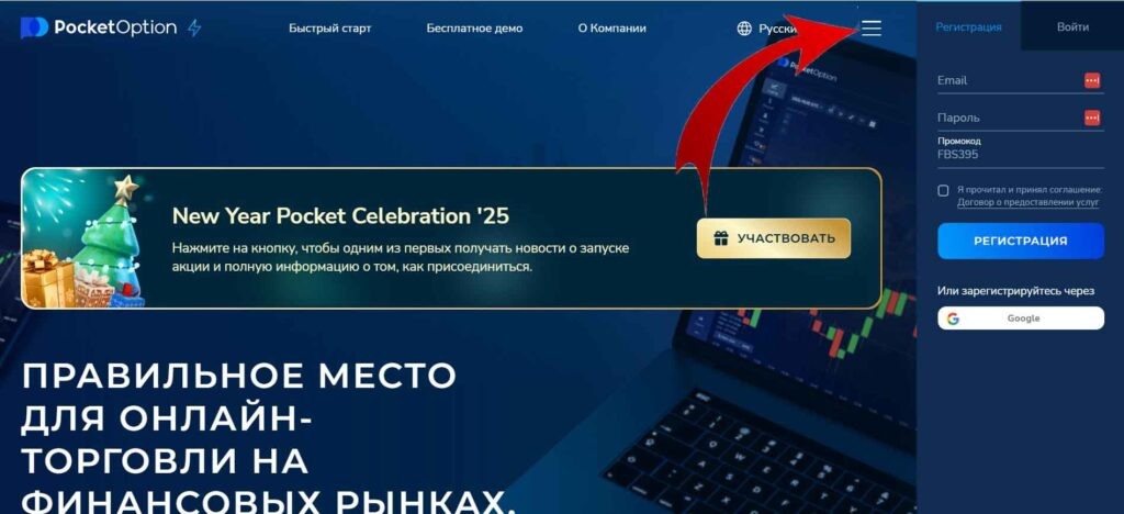 1. Официальный сайт Pocket Option