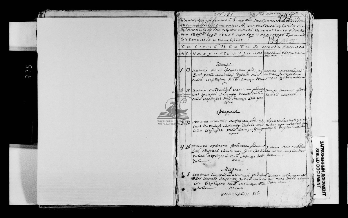 Метрическая книга станицы Темнолесской за 1805 г. (Ставропольский край)