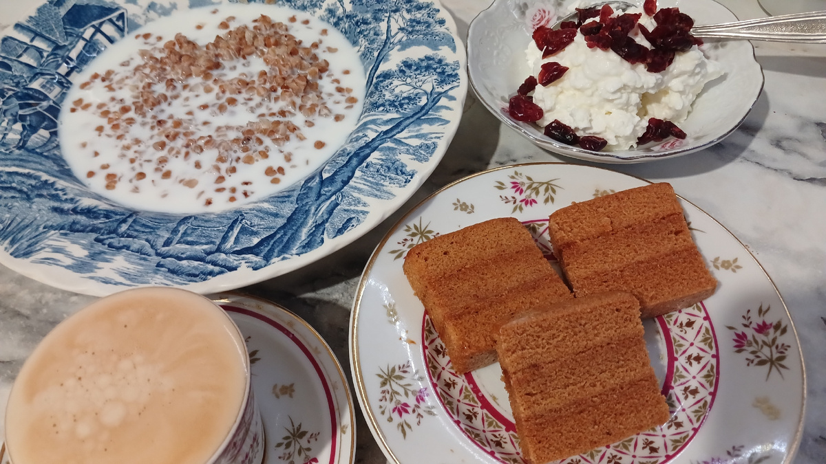 Завтракаем гречкой с молоком и творогом с клюквой. К кофе порезала белевскую пастилу из запасов. На обед была сливочная уха. И открыла еще паштет из куриной печени с черносливом из Вкусвилла. Оформлен красиво. Неплохо на вкус, но без вау-эффекта. Предыдущий из говяжьей печени запеченный был горааааздо вкуснее. После обеда попила кофе с пряничком от Миллион призов На ужин приготовила плов с индейкой. Сделала сразу на 2 дня. Так что завтра нужен будет только суп к обеду. Использовала специи для плова "Легенды Баку". Вкус мне понравился. Я -не ас в пловах, любитель, но на вкус любителя хорошо получилось. Кроме этих специй добавляла только соль. Состав готовой специи такой: Кумин (зира), томаты, куркума, чеснок, барбарис, лук, перец чили Единственное, многовато куркумы, на мой взгляд, но куркумой плов не испортишь, это очень полезная специя. Из запасов: гречка, кофе, белевская пастила, клюква, специи для плова Я сегодня потратила 1 час времени на кухне. За это время -приготовила пл