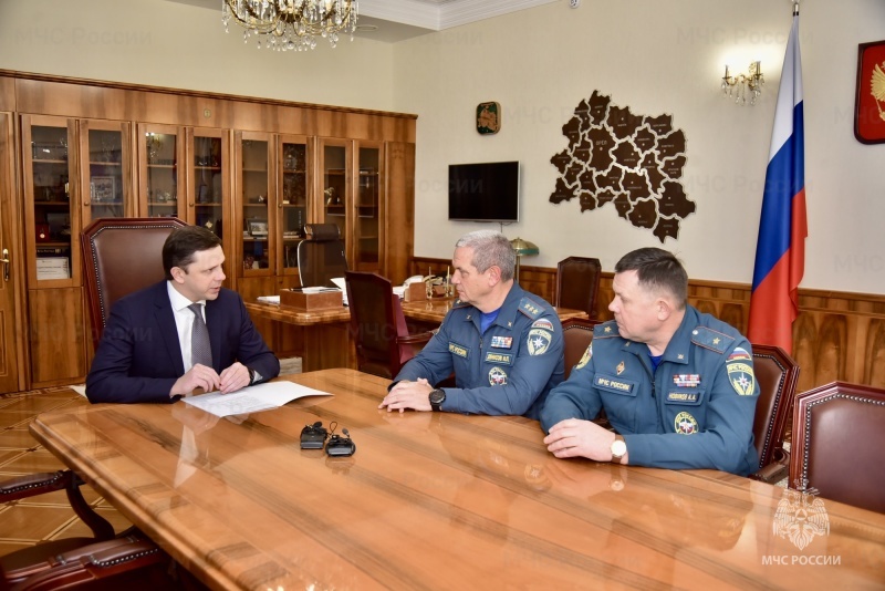 В рамках рабочей поездки в Орловскую область заместитель главы МЧС России Илья Денисов провёл проверку готовности пожарно-спасательных подразделений региона и встретился с губернатором Андреем Клычковым. Взаимодействие между Главным управлением МЧС и правительством региона осуществляется на высоком уровне по многим вопросам, касающимся защиты населения и территорий от чрезвычайных ситуаций. Губернатор выразил благодарность за конструктивное сотрудничество в оказании помощи жителям новых регионов России и организации встречи и размещения вынужденных переселенцев. В ходе встречи Илья Денисов провёл анализ опыта работы местных коллег, а также оценил результаты оперативного реагирования, ликвидации пожаров и происшествий и эффективность межведомственного взаимодействия сил и средств РСЧС субъекта. В Орле Илья Денисов посетил 1-ю пожарно-спасательную часть и возложил цветы к памятнику пожарным и спасателям. источник: МЧС России*