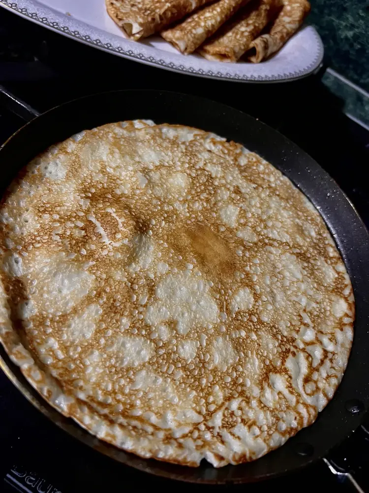 4. Выпекать блины на сковороде смазанной растительным маслом. Желательно жарить-печь с двух сторон.