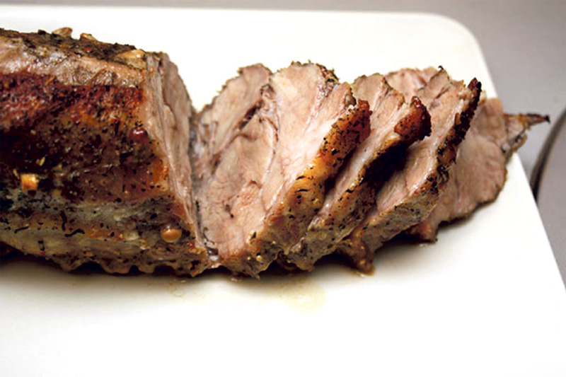 - Дайте буженине немного остыть перед нарезкой, чтобы сок не вытекал.