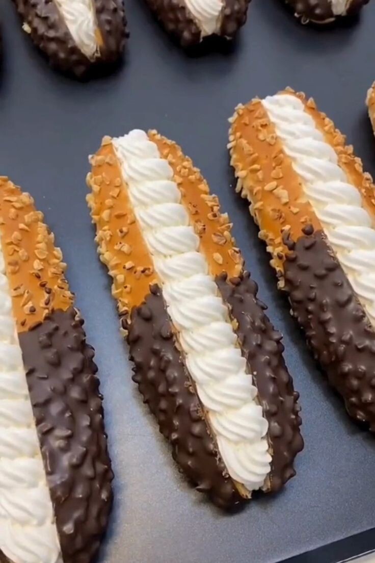Приятного аппетита! 😋 Наслаждайтесь этим изысканным заварным пирожным, сочетающим в себе нежность крема, насыщенный вкус шоколада и хруст орехов! ❤️