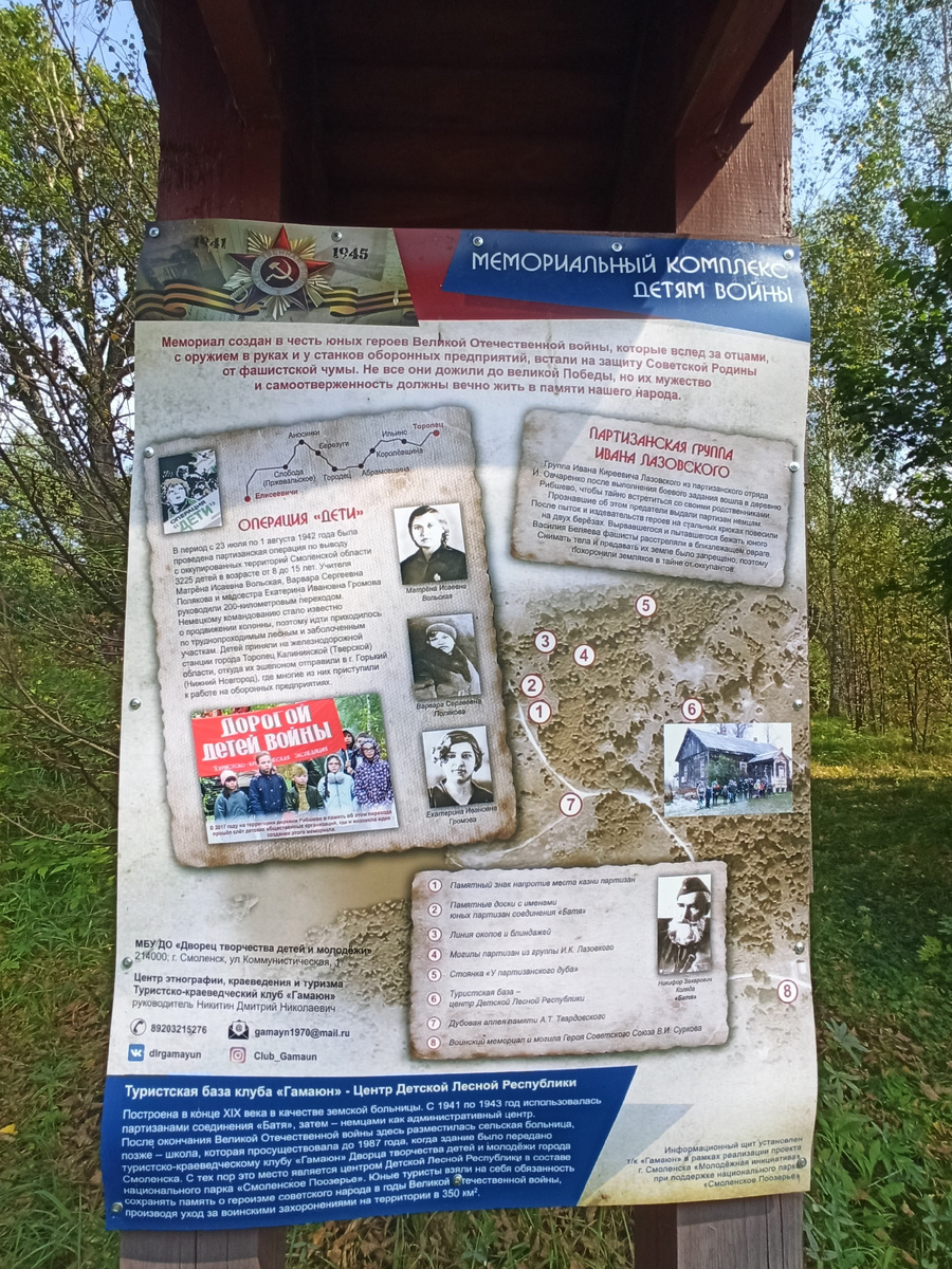 Деревня Рибшево была оккупирована 15 июля 1941 года. Очень скоро она стала крупным центром партизанского движения. Образовался отряд, даже из подростков. Немногочисленный, но вредил врагу серьёзно и по-взрослому. Немцам удалось схватить большинство юных героев. Расправа была жестокой. Кого сожгли заживо, кого раздавили танками, кого показательно повесили. Всех предварительно жестоко пытали. Один из примеров: Владимир Грушенко, педагог, краевед рассказал: "Таня Хрустикова 16 лет медсестрой была. В центре Духовщины повесили. Или ещё: Володя Огурцов 13 лет, его 17 раз пробили штыками! Это как!? Ребёнка! И ещё три огневых прострела! Что ещё можно говорить?" Владимиру Ивановичу Грушенко принадлежит идея создания Рибшевского мемориала. 18 сентября 2020 года по инициативе туристско-краеведческого клуба «Гамаюн» смоленского Дворца творчества детей и молодёжи на территории Детской Лесной Республики в деревне Рибшево Духовщинского района состоялось открытие мемориального комплекса, посвящённо