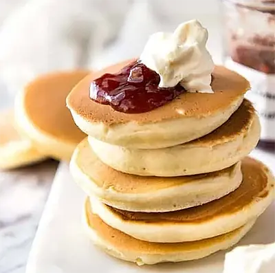 Эти мини-блинчики, которые готовятся быстро, станут восхитительным завтраком или перекусом в любое время дня. Они действительно простые в приготовлении! Подавайте их с большим количеством клубничного джема и сливок. Вот рецепт мини блинчиков. Продукты необходимые для приготовления: 185 г пшеничной муки 2,5 ч. л. разрыхлителя 2 ст. л. сахарного песка 1 яйцо 185 мл молока 1/2 ч. л. ванили (по желанию) 2 ч. ложки сливочного масла. Дополнительно: Клубничный джем и сливки (жирные сливки, взбитые) или сливочное масло. Время приготовления: 20 минут. По списку продукты мы собрали. Начинаем готовить мини блинчики в домашних условиях. 1. Взбейте муку, разрыхлитель теса и сахарный песок в миске. Сделайте углубление в центре, добавьте яйцо, молоко и ваниль. Взбивайте, пока тесто почти не станет однородным - несколько маленьких комочков допустимы. Тесто должно быть по консистенции как томатный соус. 2. Растопите сливочное масло в сковороде с антипригарным покрытием на среднем огне. Затем вытрите вс
