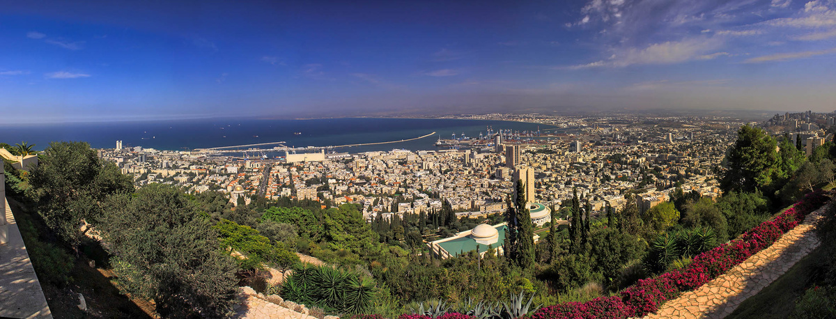 Прогулявшись по Археологическому парку Кейсарии https://dzen.ru/a/Z7CdJ7mT9m5rOTfj , мы отправились в Хайфу. Программа экскурсии была весьма отрывочна и подробного знакомства с городами не предусматривала. Собственно, как я уже писал, другого варианта знакомства с городами за один день не было. А более одного дня на эти прогулки у нас не было. В Хайфе нас ждали Сады Бахаи. Опять дам слово интернету - "В 1868 г., по указу османского султана Абдул-Азиза I, в гавань у подножия горы Кармель прибыла небольшая группа заключённых. С этого момента и начался отсчёт общей судьбы новой религии и священного с незапамятных времён места. Первоначально ссыльные содержались в Акко, но постепенно условия заключения смягчились, отношения с местным населением наладились, и семьи верующих стали селиться в Хайфе и Акко и заниматься различными ремёслами. Семья Бахауллы, основателя веры, также получила возможность жить за чертой Акко, в местности с более благоприятным климатом, и бывать в Хайфе. Пос