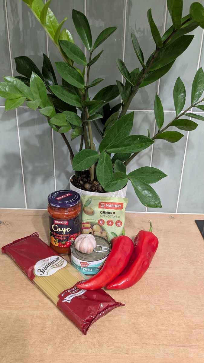 Друзья, приветствую вас на канале "Побег из Шоушенка". Посмотрела тут свою подборку рецептов и очень удивилась. Как так вышло, что до сих пор не поделилась с вами своим любимым рецептом? Это блюдо быстрое в приготовлении, оригинальное и очень-очень вкусное. К тому же, с ним справится даже начинающий кулинар. У нас в семье все его очень любят, и ингредиенты я на всякий случай всегда держу под рукой. Если так вышло, что ужин заранее не успела приготовить - полчаса, и вкуснейшие спагетти с тунцом уже благоухают в тарелках. Итак, нам понадобится: Спагетти. Или любая другая форма пасты. Конечно же, выбираем пасту из твердых сортов пшеницы. Консервированный тунец в собственном соку (в идеале уже измельчённый, как тот, что на фото) Чеснок Соус томатный с перцем "Кухмастер" или протёртые томаты. Перец болгарский или Рамиро. Оливки зелёные без косточек Базилик сушёный или смесь "Итальянские травы" Лимонный сок (можно концентрированный) Любой твердый сыр Перво-наперво поставим на плиту воду для