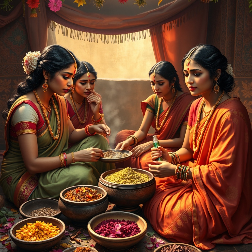 имеет богатую историю, укоренившуюся в традициях, культуре и медицинских учениях, таких как аюрведа. Индийские женщины и мужчины использовали различные натуральные ингредиенты для ухода за кожей и волосами, а также для создания макияжа. ### Исторический контекст Древние тексты, такие как «Аюрведа» и «Сиддха», упоминают о различных косметических средствах и методах их применения. Косметика в Индии была не только средством красоты, но и частью духовной практики. Считается, что внешняя красота отражает внутреннее здоровье и гармонию. ### Основные ингредиенты 1. **Травы и масла**: Использовались кокосовое, кунжутное и миндальное масла, а также масла из различных трав, которые увлажняли и питали кожу. 2. **Специи**: Куркума, шафран и мята применялись не только в кулинарии, но и в косметике. Например, куркума считалась средством для осветления кожи и улучшения ее текстуры. 3. **Цветы**: Петалии цветов, таких как розы и жасмин, использовались для создания ароматов и настоев для ухода за ко