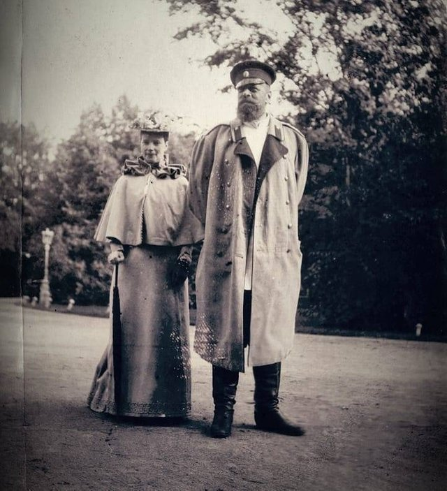 И как обычно, я начиная с Российской Империи. На этом снимке царственные особы — Александр III со своей супругой Марией Федоровной в 1894-м году. Когда-то читал Пикуля и он писал, что Александр III любил выпить, очень любил, но гомерических попоек не устраивал, а пил втихую. Ежели отойти от Пикуля и прочих писателей, то современники говорили, что да к алкоголю у него было пристрастие, но меру он всегда знал.