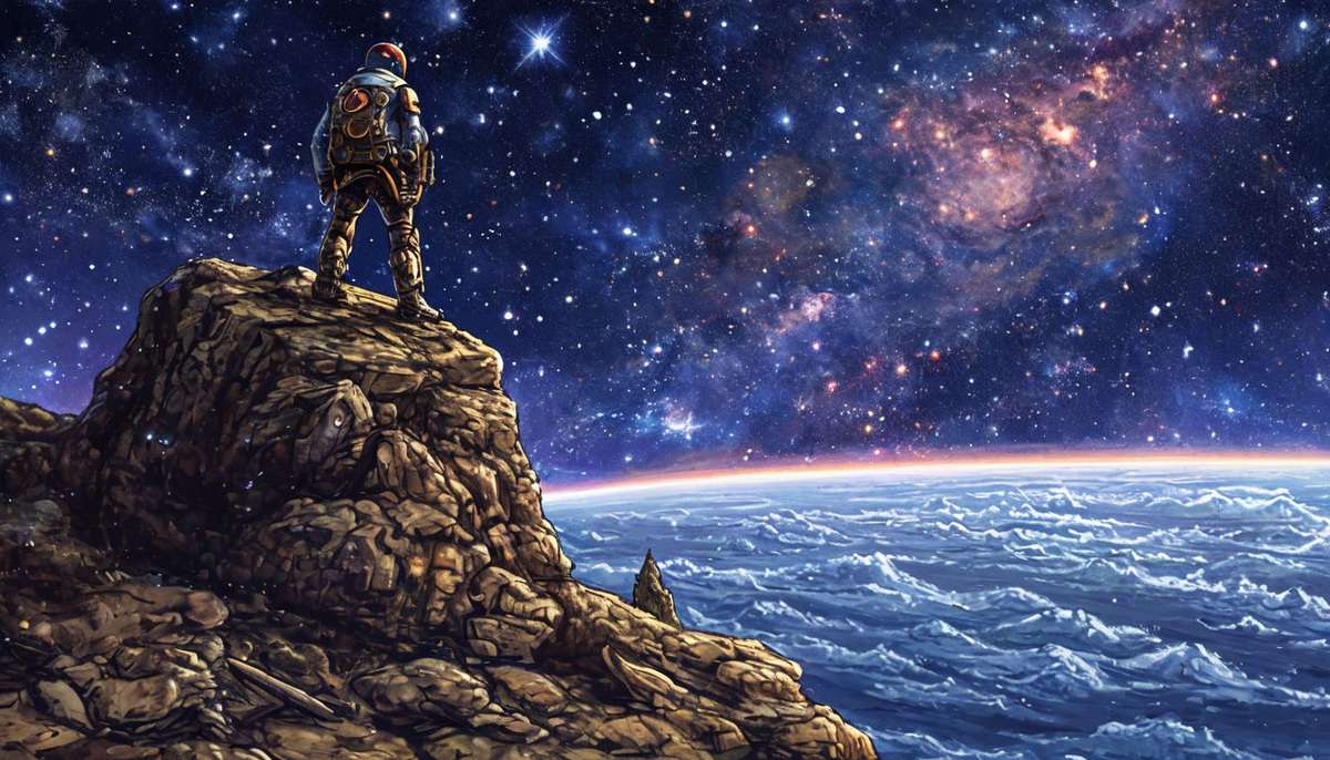 Глава 1. Послание из бездны Капитан Айрик Ворн стоял на мостике космического корабля «Гелиос-7» и всматривался в бесконечную тьму за пределами обзорного экрана. Их экспедиция приближалась к границам туманности Аргуса — региона, покрытого загадочными энергетическими всплесками, которые не поддавались ни одной известной классификации. «Капитан, мы перехватили сигнал», — голос младшего оператора связи Мэриан разорвал тишину. «Что за сигнал?» — Ворн нахмурился. «Он… старше, чем наша цивилизация», — пробормотала она, увеличивая проекцию данных. «Возраст превышает пятьсот тысяч лет». Ворн обменялся взглядами с главным научным офицером Крейном. Если сигнал был настолько древним, то его источник мог изменить все представления о развитии разумных существ в галактике. «Выведите координаты», — скомандовал капитан. «Мы идем к источнику». «Гелиос-7» вышел из варп-прыжка рядом с массивной, но давно мертвой планетой, чья поверхность была испещрена кратерами и глубокими разломами. Сенсоры улавливали о