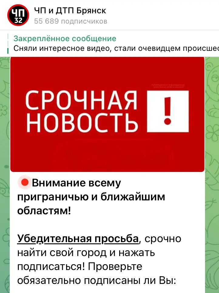 В Брянске разоблачили фальшивых бойцов «Барса». Злоумышленники создали поддельный телеграм-канал брянского отряда «Барс». Об этом сообщили представители военного подразделения. «Друзья, внимание! Враги создали фейковый телеграм-канал, который они выдают за наш, за канал «БАРС – Брянск». Никаких иных каналов «БАРС – Брянск», кроме этого, нет», − отметили в настоящем телеграм-канале отряда, посоветовав отправлять жалобы на мошенников. Как правило, каналы-фальшивки создают ушлые граждане, решившие заработать быстрые деньги на теневой рекламе. По наблюдениям, после атак со стороны ВСУ в брянском сегменте «Телеграма» мгновенно появляется реклама подобных каналов. Многие администраторы местных сообществ, получив деньги, призывают подписчиков переходить и подписываться на различные каналы «срочных оповещений», другие сомнительные ресурсы «оперативной информации». Один из примеров такой рекламы Не боятся размещать подобную рекламу мошенников даже каналы, имеющие более 10 тысяч подписчиков, сто