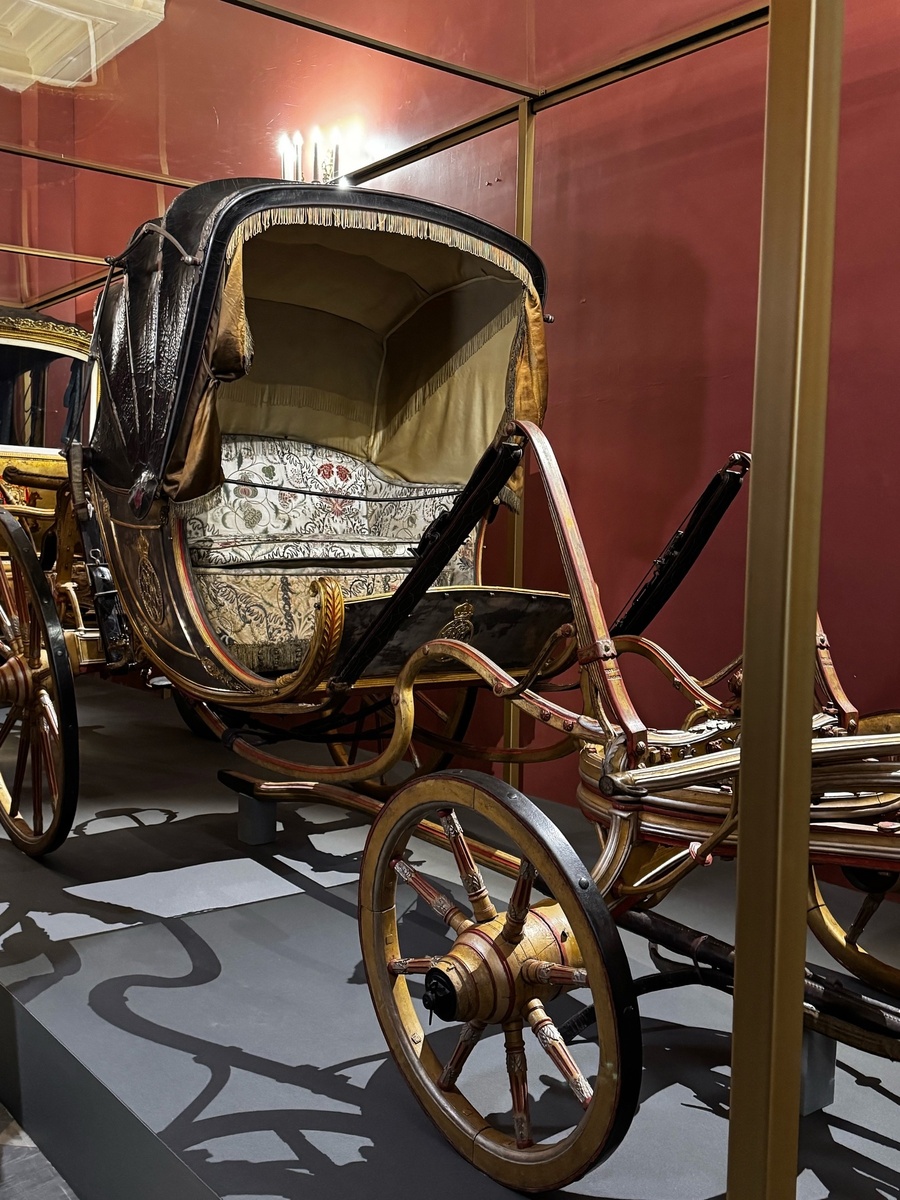 Из мира интересных музейных экспонатов. На прошлой неделе в ГИМе появилось небольшое дополнение к экспозиции. В холле у Красной лестницы поставили три отреставрированных экипажа XVIII-XIX веков. В экспозицию попали: ✅Коляска императора Павла I Создана в 1800 году, использовалась для выездов Павла Петровича с женой Марией Федоровной. В 2003-2006 году коляску отреставрировали до экспозиционного состояния. ✅Детская карета для детей Александра II Карету изготовили к пятилетию старшей дочери Александра II и Марии Александровны, великой княжны Александры, к сожалению, в шесть лет заболевшей менингитом, после чего в роду Романовых больше ни одну девочку Александрой не называли. Отреставрирована в 2010-2014 годах. ✅Парадная карета графов Матюшкиных Изготовлена в 1760-е годы французскими мастерами, работавшими по приглашению в России. Реставрировалась с 2003 по 2006 годы. Хотя реставрация карет проводилась несколько лет назад, после ее окончания они находились в открытом хранении. Теперь экипа