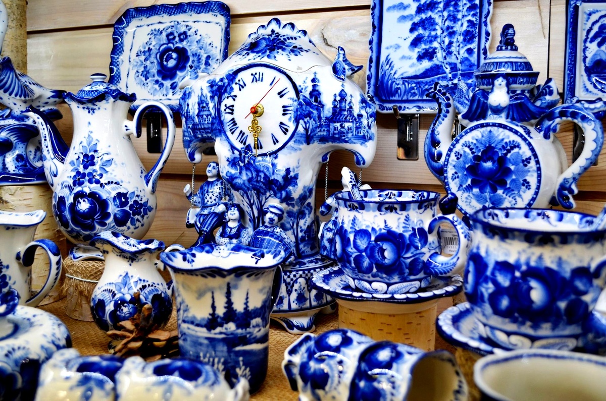 Гжель — это традиционный русский промысел, особый вид росписи по керамике. Для создания гжели, как правило, используют белые и синие краски. Изначально Гжелью называлась деревня недалеко от Москвы. Впервые это название появилось в списке владений князя Ивана Калиты в XIV веке. Считается, что слово «гжель» произошло от глагола «жечь». В деревне Гжель с древности занимались гончарным искусством. Здесь создавали разные глиняные изделия, лепили и обжигали керамическую посуду и фигурки. Со временем Гжелью стали называть не одну деревню, а сразу несколько — «гжельский куст», который объединил около тридцати населенных пунктов. В Российской империи их включили в Гжельскую волость. В конце XVII века по указу царя Алексея Михайловича в Гжели стали делать аптекарские и алхимические сосуды по государственным заказам. А в 1740-х химик Дмитрий Виноградов создал из местной глины первые русские фарфоровые изделия. Бело-голубая роспись появилась на гжельских предприятиях в начале XIX века. Раньше мест