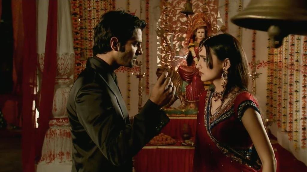 Ну а сам Арнав вот тут нежничает вовсе не с исполнительницей роли Куши. Поскольку тут волосы длинные свои, а у главной героини они были пристегнуты заколками.