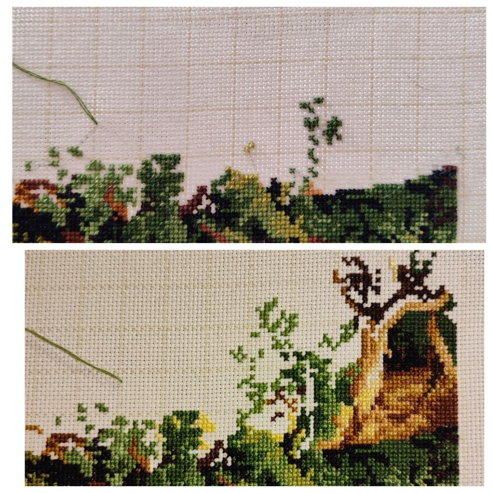 В этот раз мы так хорошо при перемотке натянули канву, что вышивать было сплошное удовольствие. Вышивать решила справа, так как это самый неудобный участок, мешает сам станок нижней правой руке, хочется побыстрее с ним разделаться.