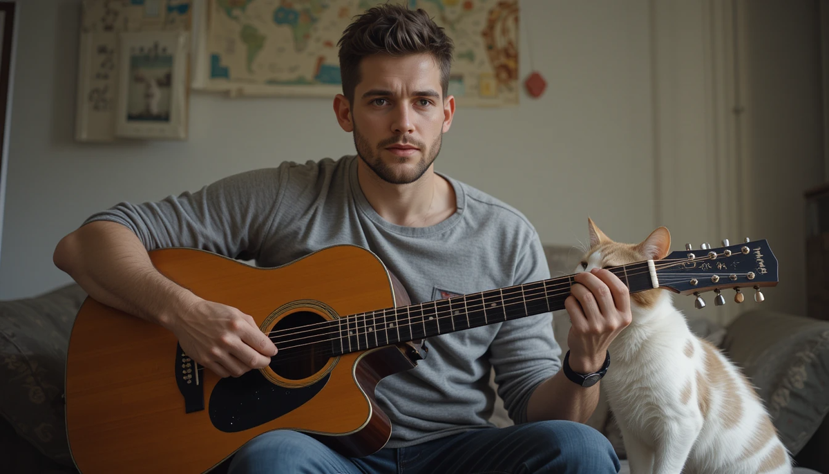 Жизнь — это постоянный поиск себя. Иногда ты думаешь: "А что, если я стану музыкантом?" Именно так началась моя история с гитарой. Я купил инструмент, посмотрел несколько видеоуроков на YouTube и решил, что через неделю уже буду играть как Джимми Хендрикс. Ох, как же я ошибался... Первый урок был простым: нужно было научиться настраивать гитару. Звучит легко, правда? Но нет. Оказывается, чтобы настроить гитару, нужно иметь либо слух, либо специальный прибор. У меня ни того, ни другого не было. Поэтому я доверился своему внутреннему чувству музыки и начал настраивать струны, ориентируясь на то, что "кажется, должно быть правильно". Результат превзошёл все ожидания: когда я попробовал сыграть первую ноту, мой кот Мурзик, который обычно спит где-то в углу, вдруг подпрыгнул так высоко, что чуть не пробил потолок. "Наверное, он просто рад за меня," — подумал я и продолжил тренироваться. Второй шаг — это научиться играть аккорды. Я взял самые простые: C, G, D. Каждый раз, когда я пытался пер