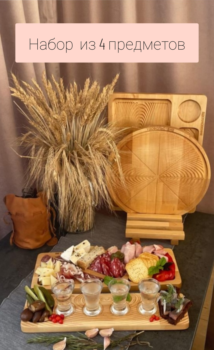Вот подробный обзор на каждую нашу доску из набора: ### 1. **Доска для подачи мяса** - **Назначение**: Идеальна для сервировки мясных блюд, таких как стейки, буженина, колбасные нарезки или шашлык. **Материал**: Чаще всего изготавливается из дерева (дуб, бамбук, акация) или прочного пластика. Деревянные доски выглядят стильно и подчеркивают натуральность блюда. - **Особенности**: - Имеет достаточный размер для размещения крупных кусков мяса. - Может быть оснащена желобками по краям для сбора сока. - Некоторые модели имеют ручку для удобной переноски. - **Плюсы**: Эстетичная подача, удобство использования, долговечность. - **Минусы**: Деревянные доски требуют тщательного ухода (регулярное мытье и пропитка маслом). ### 2. **Доска для хлеба и пиццы** - **Назначение**: Предназначена для подачи хлеба, булок, пиццы или других мучных изделий. - **Материал**: Обычно из дерева или бамбука, иногда с добавлением декоративных элементов (например, вставки из эпоксидной смолы). - **Особенности*
