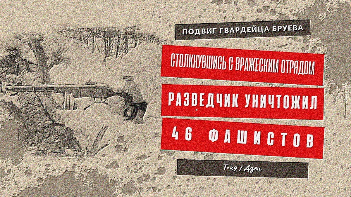 Вокруг места, где происходил неравный бой разведчика с отрядом немцев, красноармейцы нашли 46 фашистов, уничтоженных гвардейцем Бруевым.
