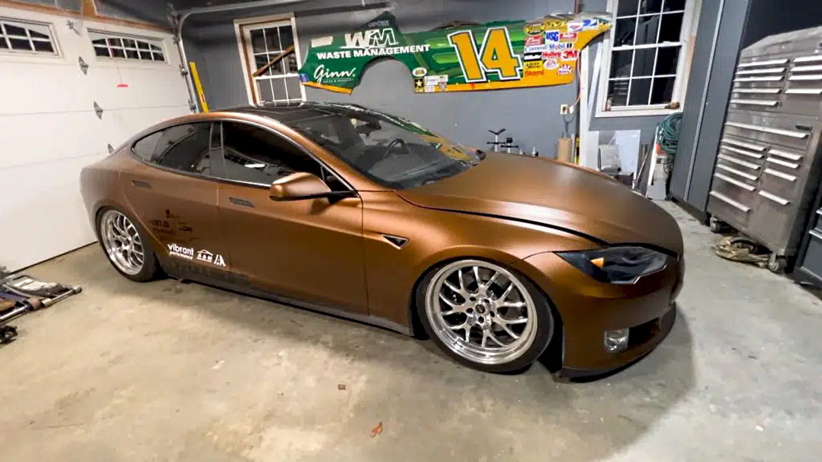 В эту Tesla поставили мотор от Camaro. Рич Бенуа приобрёл пострадавшую от наводнения Tesla Model S и взялся за восстановление, но Тесла отказалась продавать нужные детали оставив его с бесполезным куском металла. Тогда в небольшом гараже в сельской местности штата Массачусетс Рич и его друзья Стивен Саловски и Джошуа Додж решили установить 6,2-литровый V-8 от разбитого Camaro SS в Tesla Model S. На переделку Тесла в автомобиль с ДВС команда потратила примерно год. Из Теслы убрали все, что было связано с электрической частью и установили V8 от Шевроле Камаро с мощностью 426 л.с. В результате большого объема переделок, у ребят все же получилось построить первую в мире Теслу, работающую на бензине. В Теслу установили механическую трансмиссию, бензобак, пневматическую подвеску и конечно, облегченные колесные диски. Но не все было так просто. Они назвали этот проект FrankenTesla или ICE-T (сокращение от Internal Combustion Engine-Tesla) и задокументировали его сборку на своем YouTube-кан