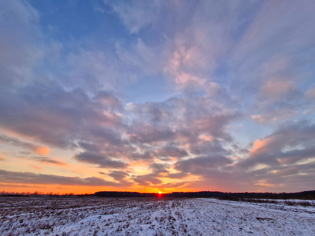 В последнее время у нас чаще всего в небе плотная облачность и солнца почти не видно. К сожалению, с такой погодой закаты не часты совсем. Поэтому вчерашний закат был просто подарком небес. За непродолжительное время цвета неба менялись несколько раз и всегда красиво. Ну красота же! Чудо природы доступное каждому.