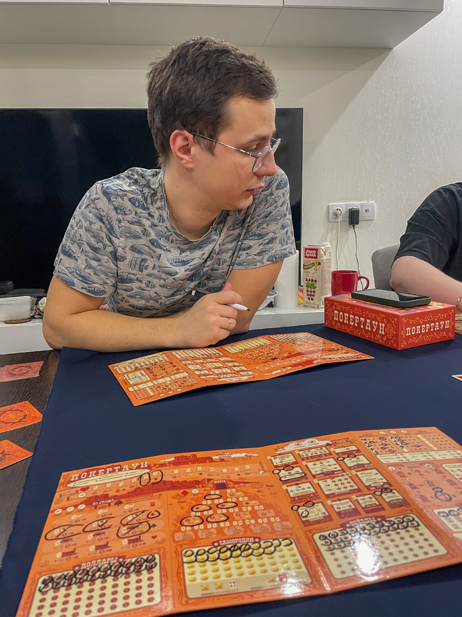Скоро будет год, как я впервые сыграла в «Покертаун» — мне её показали друзья в Питере, после чего я захотела эту настолку себе в коллекцию, хотя вы, наверное, уже поняли, что я довольно прохладно в целом отношусь к ролл-энд-райтам и флип-энд-райтам (есть исключения, но всё же).